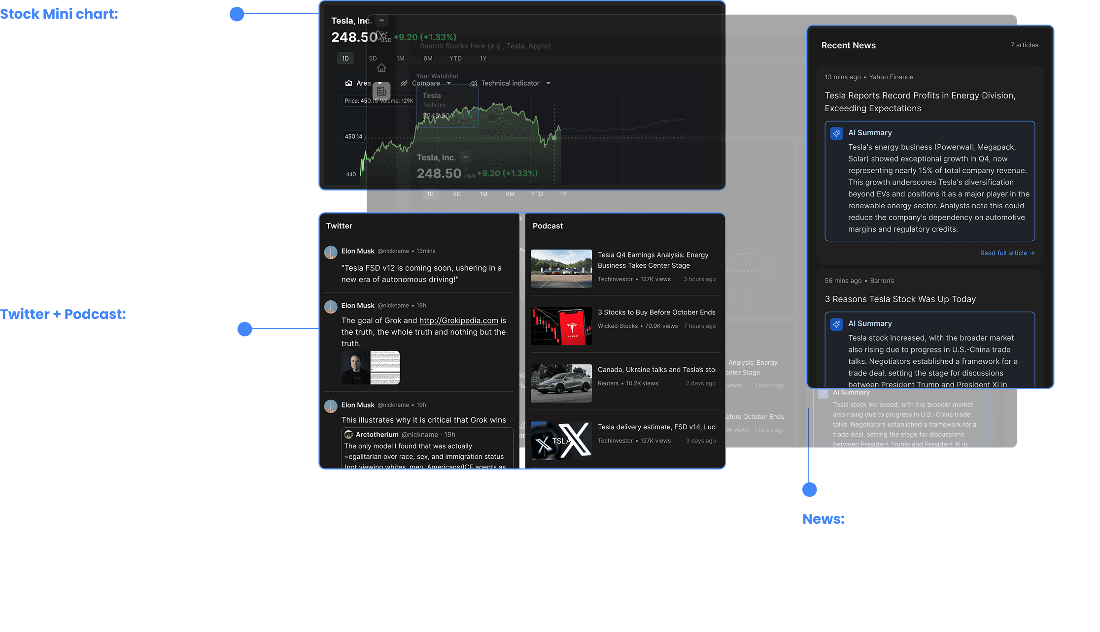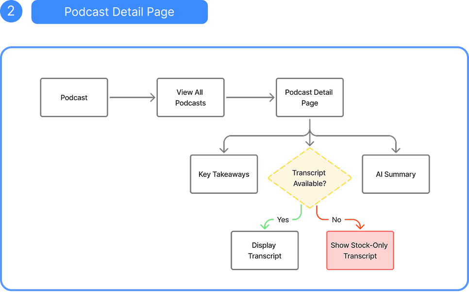 I led three key features of this products: 1) Watchlist homepage; 2) News Detail Page; 3) Podcast Detail Page for an AI-driven Fintech dashboard, defining the strategic MVP from concept to handoff-ready designs within a 2-month sprint.